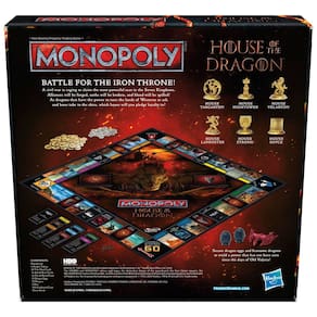 Jogo de tabuleiro Monopoly House of the Dragon Edition | Baseado na série de TV de sucesso | 17 anos ou mais | 2 a 6 jogadores | Jogos de estratégia (exclusivo da Amazon) - BASEADO NA SÉRIE DE TV DE SUCESSO: Battle for the Iron Throne in the Monopoly House of the Dragon Edition. A jogabilidade clássica de Monopoly combina arte, histórias e personagens da série - 6 GOLDEN ZINC TOKENS: Inclui 6 fichas douradas do jogo: House Targaryen, House Hightower, House Velaryon, House Lannister, House Strong e House Royce. A quem você jurará lealdade. - O TABULEIRO DE JOGO APRESENTA LOCAIS DO SHOW: Viaje por Westeros e Essos assumindo o controle de quantas fortalezas, terras e baías você puder. Quanto mais controle, mais aluguel você pode coletar - SECURE DRAGON EGGS AND DRAGONS: Nesta edição do jogo Monopoly, ovos de dragão e dragões de plástico substituem casas e hotéis. Assim que tiver um conjunto de cores, você pode começar a reforçar seu território com elas - FIRE and BLOOD AND ASH e BONE CARDS: “Jogamos um jogo feio. E agora, pela primeira vez, vejo que você tem a determinação de vencer. Colete 10 moedas.” Encontre recompensas e punições nesses cartões. Alguns incluem citações do programa - DINHEIRO COM TEMA DE HOUSE OF THE DRAGON: Inclui 102 moedas de papelão temáticas. O último jogador com moedas quando todos os outros faliram vence — PRESENTE PARA FÃS DE HOD AND GOT: embalado em uma embalagem impressionante com estampagem esculpida e brilho UV pontual, este jogo de estratégia é o presente ideal para fãs de House of the Dragon e Game of Thrones com 17 anos ou mais