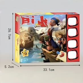 Material: Papel Cor: Vermelho Tamanho do pacote: 33 x 5 x 26,7 cm Peso do pacote: 0,56 kg Lista de embalagem: 1 x Risk Junior Board Game (50 cartas) Risk Junior: Uma versão simplificada do clássico jogo de tabuleiro Risk, projetado para crianças de 5 anos ou mais. Este jogo com tema pirata oferece uma maneira envolvente para jovens jogadores desenvolverem habilidades de pensamento estratégico e tomada de decisão. Aventura com tema pirata: embarque em uma aventura pirata enquanto os jogadores usam navios para conquistar territórios. Com peças de jogo coloridas e regras fáceis de entender, o Risk Junior oferece uma introdução divertida à jogabilidade estratégica. Ideal para 2 a 4 jogadores: o Risk Junior é perfeito para familiares e amigos, oferecendo um emocionante jogo competitivo para 2 a 4 jogadores. É uma ótima opção para crianças que estão começando a gostar de jogos de tabuleiro. Jogo de estratégia simples: fácil de aprender e rápido, o Risk Junior introduz conceitos básicos de estratégia sem ser muito complicado. Uma ótima maneira de estimular o pensamento crítico em jovens jogadores enquanto se divertem. Jogo para toda a família: Risk Junior é o complemento perfeito para as noites de jogos em família, ajudando as crianças a trabalharem juntas, tomarem decisões e se divertirem competitivamente. Sua mecânica simples garante que todos possam jogar e se divertir.