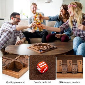 Shut-the-Box é um jogo tradicional de contagem, adição e probabilidade que remonta ao século 18, quando o jogo foi apreciado por pescadores normandos após um longo dia no mar. Hoje o jogo é jogado com a família, utilizado em salas de aula para ensinar adição e probabilidade, e é até mesmo um jogo de apostas jogado em pubs em toda a Europa! Role os dados e coloque qualquer combinação numérica de peças que correspondam ao seu rolo. Continue rolando até que você não consiga mais combinar com o seu rolo nos azulejos restantes. A pontuação mais baixa ganha o jogo. Se você colocar todos os azulejos, então você "fecha a caixa". Esta versão de quatro lados é feita de madeira de coloração média e longa duração com uma superfície de feltro para tocar. A caixa de madeira mede 30 x 30 x 5 cm. Possui 10 peças numéricas de madeira em vez dos nove números típicos de outras versões, trazendo mais combinações numéricas em jogo. Pode ser jogado com qualquer número de jogadores, mas o tabuleiro de 4 lados o torna ideal para quatro jogadores. Certamente trará horas de diversão e charme do velho mundo para sua casa. Um ótimo presente para crianças e adultos Este excelente conjunto de jogos de tabuleiro Shut The Box é um presente perfeito para crianças, famílias ou amigos. E esta é uma recreação divertida para passar momentos felizes com amigos e familiares. - ?Fácil e divertido para todas as idades? - O jogo de madeira ropoda Shut the Box (estilo vantageiro) é fácil de aprender e engraçado para crianças, adultos e famílias. Pode ser jogado com 2 a 4 jogadores e proporcionar horas de entretenimento divertido! - ?Ferramenta de aprendizado e jogo familiar? – Hoje em dia, o jogo Shut the Box tornou-se uma ferramenta para ensinar adições básicas na sala de aula enquanto também melhora as habilidades sociais básicas. Também é um excelente jogo de tabuleiro para a família. - ?Jogo tradicional de PUB? - O jogo Shut the Box Wooden era um jogo popular nos pubs de Manchester e ainda está sendo jogado em todo o mundo hoje. Este lindo jogo de fechar a caixa proporcionará horas de diversão onde quer que você vá. - ?Qualidade premium? – o jogo ropoda close the box é feito de madeira de pinho sólido e medindo 30,5 x 30,5 x 5 cm. Esta versão maior tem 10 azulejos de madeira com número de serigrafia que trazem mais combinações numéricas do que as versões de nove números. - ?Ajuda ao produto? - A satisfação do cliente é nossa primeira prioridade. Se você tiver alguma dúvida, sinta-se à vontade para entrar em contato conosco. Estamos muito dispostos a ajudá-lo.