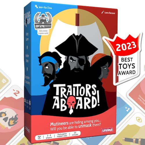 - Traitors Aboard é um jogo de festa de identidade secreta rápido, divertido e simples que combina blefes, estratégia, alianças e (obviamente) traições. Acessível a todas as gerações, é o jogo perfeito para traiçoeiros ou para seus amigos e noites de jogos em família mais traiçoeiras!
