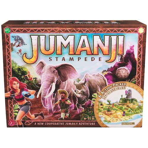 Spin Master Games, jogo de tabuleiro cooperativo Jumanji Stampede, jogo de aventura em 3D baseado no filme de comédia e ação, Family Game Night for Ages 8+ - JOGABILIDADE COOPERATIVA: Trabalhem juntos para enfrentar os desafios e objetivos das cartas enquanto arriscam suas vidas para coletar cinco cristais mágicos antes que o vilão chegue à Montanha do Rinoceronte. - ENTRE NO MUNDO DE JUMANJI: experimente 6 emergências únicas na selva que estão esperando para pará-lo: cobra giratória, elefante enfurecido, babuíno saltitante, pedregulho e leopardo saltitante. - JOGO DE TABULEIRO DE AVENTURA 3D: Construa o tabuleiro com peças 3D interativas, incluindo a Montanha Rhino de 7 polegadas de altura e perigos e obstáculos ocultos extras. - JOGOS SPIN MASTER: Para fãs de filmes de ação e do jogo de tabuleiro Jumanji, compre jogos de estratégia, jogos de tabuleiro para adultos, jogos de tabuleiro para crianças de 8 a 12 anos, quebra-cabeças de 1000 peças para adultos, jogos familiares, jogos de jardim e muito mais! - JOGOS DE TABULEIRO PARA A NOITE EM FAMÍLIA: traga a próxima comédia para a noite de jogos em família com um de nossos jogos para adultos, jogos para casais, jogos de festa, quebra-cabeças de 500 peças para adultos, jogos para crianças de 4 a 8 anos ou jogos de cartas para adultos. - Inclui 4 partes da borda do tabuleiro de jogo, 2 partes da ilha 3D, 34 fichas, movimentos para 4 jogadores, 1 vilão, 6 peças de power-up, 4 tabuleiros, 20 cartas, 1 ponte, 4 dados, 1 árvore de cobra, 1 chifre de cristal, 1 bola de aço, 1 montanha de rinoceronte, 1 babuíno, 1 árvore de babuíno, 1 leopardo, 1 lançador de leopardo, 2 bolas de plástico, instruções - Coberto pelo Spin Master Compromisso de cuidado. Veja abaixo os detalhes completos