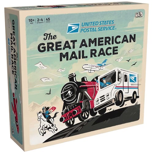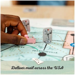 USPS Great American Mail Race: um jogo de tabuleiro familiar com cartas para crianças a partir de 10 anos e adultos - Assinado, selado, entregue: é seu! Corra pelos EUA e entregue o máximo de pacotes possível neste jogo de tabuleiro familiar para crianças e adultos. - ENTREGA DE CORREIO PARA A LUA: Use 15 tipos diferentes de cartão de transporte para atravessar o mapa antes de qualquer outra pessoa. Com aviões, trens e um foguete oficial USPS. - PRÓXIMA PARADA, "ELEPHANT BUTTE": a maioria dos jogos de trem adere às principais cidades, mas agora você pode entregar cartas para "Big Bottom" em Dakota e deixar cartões postais em "Ding Dong" no Texas. São todos lugares reais — basta procurá-los! - Ação de primeira classe, garantida: carimbe seu recibo sempre que você entregar (ou roubar) um pacote. Provavelmente o único jogo de tabuleiro familiar que vem com um selo oficial USPS. - Fácil de aprender, rápido de jogar: um dos melhores novos jogos de tabuleiro para crianças, adultos e carteiros. Melhor jogado com 2 a 4 jogadores, a partir de 10 anos. - 98 cartões, 4 cubos de correio, 4 peças de van, 4 caixas de correio, 4 bases, 1 ficha de cartão postal, 1 quadro, 1 carimbo de tinta, 1 envelope, 1 bloco de pontuação (50 folhas), 1 instruções, 1 adesivo de batata - Coberto pelo compromisso Spin Master Care. Veja abaixo os detalhes completos