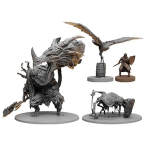 - 22 miniaturas detalhadas de combate sem dados, incluindo uma enorme miniatura de Godrick, o Enxertado, na base de 120 mm, progressão de personagem recompensadora
