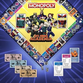Monte seu time de heróis na MONOPOLY: My Hero Academia! Escolha entre os melhores e mais brilhantes da Classe 1A, incluindo estudantes e professores favoritos dos fãs. Desenhe da Go Beyond! e Plus Ultra! decks para avançar sua equipe, mas certifique-se de evitar detenção! - Encontre sua peculiaridade e torne-se um herói enquanto revive suas memórias favoritas do programa de anime de sucesso My Hero Academia neste jogo Monopoly único e colecionável. Um ótimo presente para fãs de My Hero Academia e um jogo perfeito que você não vai querer deixar passar. - Compre, venda e troque seu caminho para a vitória em 22 espaços de propriedade exclusivos com estudantes e professores populares, incluindo Izuku Midoriya, Shoto Todoroki, Tsuyu Asui e muito mais — cada um com seu próprio cartão de escritura e valor de propriedade. - Com 6 fichas de jogador esculpidas personalizadas - viseira Eraserhead, luva de granada, máscara Deku, bomba falsa, mão de Shigaraki e símbolo UA - Inclui: 1 tabuleiro de jogo, 6 fichas colecionáveis, 28 cartas de escritura, 16 cartas de chance renomeadas para "Plus Ultra", 16 cartas Community Chest renomeadas "Go Beyond", dinheiro monopolista com tema personalizado, 32 casas renomeadas para recompensas, 12 hotéis renomeados troféus, 2 dados de seis lados, R$ ules - 2-6 jogadores | Idades 8+ | 60+ minutos de tempo de jogo