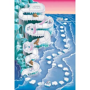 - 2 a 6 jogadores jogam dados simultaneamente, selecione quantos espaços você quer mover e pronto! Bata em outros pinguins para empurrá-los e/ou pousar em espaços especiais para coletar peixes, deslizar pelo gelo e rolar o dado de foca.