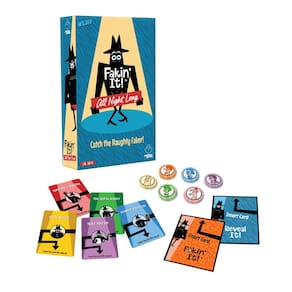 Wilder Jogo de tabuleiro JACKBOX Games Fakin' It All Night Long – Jogo de tabuleiro para noites e festas maduras – Jogo de cartas picante para adultos a partir de 17 anos (3-6 jogadores) - Novo conteúdo a noite toda. Explore o novo conteúdo ousado na adaptação "All Night Long" do clássico jogo Fakin' it. Repleto de tarefas picantes e picantes para elevar a diversão! - Jogo de cartas da Jackbox Games. Dê vida ao jogo online Jackbox Games Fakin' It com a nova versão do jogo de cartas! Um jogo de festa que desafia os jogadores a tentar identificar qual de seus amigos é um mentiroso mentiroso. Um jogador do grupo será um "falso" que deve tentar se misturar com o grupo. - Você pode enganar seus amigos? : Seja um mestre da decepção quando você for chamado de Faker, e um detetive afiado para descobrir quem entre seus amigos está fingindo! - Como brincar. Uma carta com uma tarefa escrita será passada pelo grupo para cada jogador ler, usando carteiras secretas especiais. Mas cuidado! A carteira secreta de um jogador não revela o que a carta diz, então eles têm que fingir! - Jogue com 5 categorias: Hands of Truth; os jogadores devem levantar a mão ou manter a mão para baixo. Pressão numérica; levante um certo número de dedos, entre 1 e 10. You Gotta Point; aponte para outro jogador ou até mesmo para você mesmo. Valor nominal; faça uma expressão facial. Envie uma mensagem de texto para você - cada jogador deve responder à pergunta em sua carta em voz alta, sinceramente. - Conteúdo da embalagem: 150 cartões de tarefas, 18 fichas de votação, 6 carteiras secretas (5 funcionais, 1 falso), 1 carteira reveladora