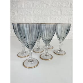 JOGO DE TAÇA DE VIDRO COM BORDA DOURADA 6PÇS 210ML - CA16187