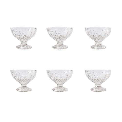 JOGO DE TAÇA DE VIDRO PARA SOBREMESA COM PÉ COM 6 PEÇAS
