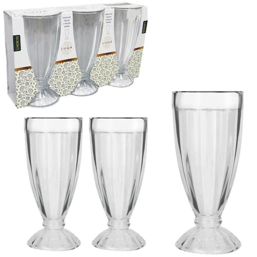 Jogo de taça de vidro para sorvete / milk shake luqa hercos com 3 peças 340ml Jogo de taça de vidro para sorvete / milk shake luqa hercos com 3 peças 340ml na caixaInformações adicionais: Ean: 7898706181948 Validade: indeterminada Capacidade: 340ml Tamanho aproximado da taça: 17,5x7,5cm de Tamanho aproximado da embalagem: a:17,5xl:30xp:8,5cm Peso aproximado: 1395g Tipo de produto: jogo de taca para sorvete / milk shake luqa hercos com 3 pecas na caixa Cor: transparente Composição: vidro