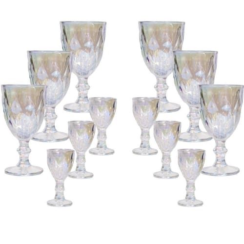 Jogo De Taças 12 Peças Diamond Vidro Vinho Água 300ml