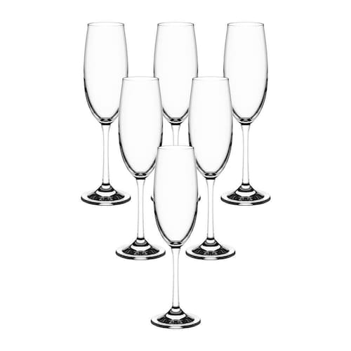 Jogo de taças de Champanhe de Cristal com Titânio 6 peças 220ml Haus Concept 56313/100 Conjunto de 6 Taças Espumante Haus Concept 220ml em titânio 56313/100 Os copos e taças da Haus Concept são elaborados em Cristal ecológico, com titânio, o que imprime mais brilho e transparência. Com diversos formatos, ideais para vários tipos de bebida, a nova categoria de produtos Haus traz elegância e praticidade. Dimensões aproximadas:Altura: 22,5cmDiâmetro: 6,6cmCapacidade: 220ml Características:Marca: Haus Concept Referência: 56313/100Material: Cristal com TitânioQuantidade: 6 peçasCor: Transparente Imagens ilustrativas.