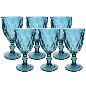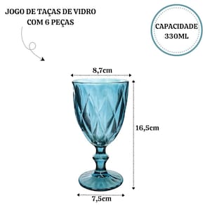 JOGO DE TAÇAS DE VIDRO AZUL COM 6 PEÇAS 330ML- CA16183
