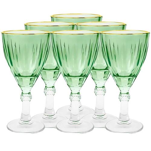 Especificações: Material: - Vidro Cor: - Verde Borda Dourada Capacidade:- 275ML Pacote contém: - 6 Unidade Aviso: - Imagem meramente ilustrativa Garantia: - 90 dias contra defeito de fabricação. -