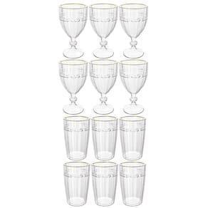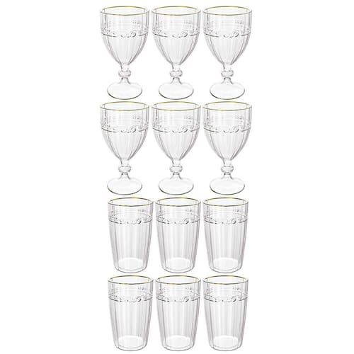 Conjunto De 6 Taças e Copos Imperial Transparente Fio de Ouro - Lyor