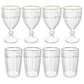 Conjunto De 4 Taças e Copos Imperial Transparente Fio de Ouro - Lyor