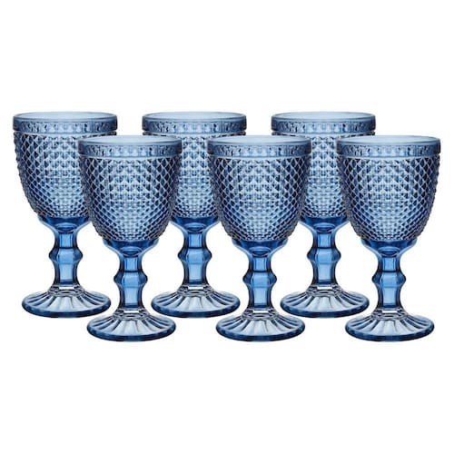 Jogo de Taças para Água Bico de Jaca Azul 6 Peças HauskraftDecore sua mesa com este lindo jogo de taças de água, sendo ideal para qualquer ocasião que você queira servir bem. Design elegantes com seus relevos que dará requinte a sua mesa. Completa o seu lar, dando aquele toque de sofisticação e charme.- Dimensões da Peça: 9 x 9 x 17cm- Cuidados:• Use somente esponja macia e sabão neutro.• Não limpe as peças com esponjas ásperas, palha de aço ou produtos abrasivos.• Enxágue com água em abundância.• Para secar, utilize um pano seco e macio.- Atenção:• Evite pancadas e choques térmicos, pois isso poderá causar trincas ou quebras no produto, resultando em cacos de vidro.