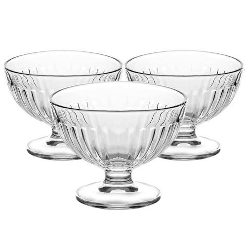 - Dimensões: 10,5 x 8,5cm diâmetro x altura . - Capacidade: 260ml - Taças de vidro de alta qualidade. - Design elegante e moderno. - Ideal para servir sobremesas em ocasiões especiais. - Conjunto com 3 unidades, perfeito para pequenas reuniões ou jantares intimistas.