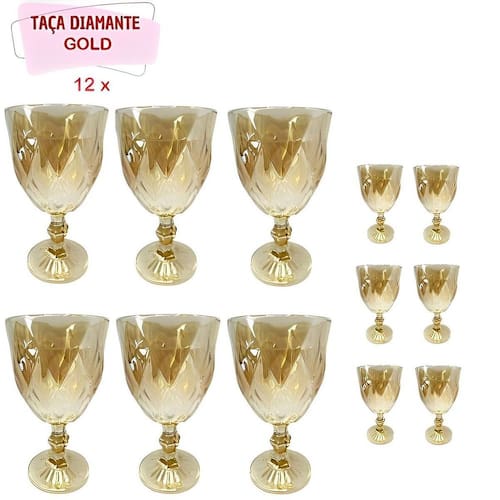 Cor: gold Jogo de taças vidro suco vinho água diamond 12un gold Marca: Tesla Store