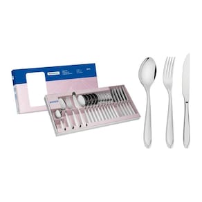 Jogo De Talheres 24 Peças Tramontina Laguna 66906840 Inox Inox 66906840 Especificações Gerais do Produto:Linha: LagunaCor: InoxMaterial: Aço InoxGarantia: 90 dias junto ao fabricanteReferência: 66906840Pegador / Cabo: Aço InoxTratamento do Talher: Facas com tratamento térmicoPode ir à Maquina de Lavar Louças?: Sim O que vem na caixa:6 Colheres de mesa 6 Colheres para chá 6 Facas de mesa / Facas para churrasco 6 Garfos de mesa