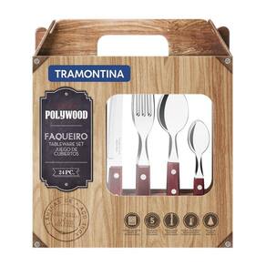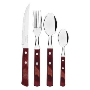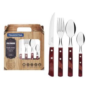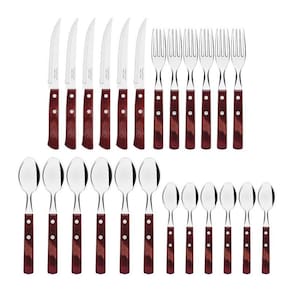 Jogo de Talheres 24 Peças Tramontina Polywood 21199705 Vermelho Lâminas em Aço Inox e Cabos de Madeira Tratada