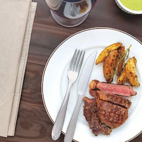 - 6 Colheres de Mesa; - 6 Colheres para Café; - 6 Colheres para Chá; - 6 Facas para Churrasco; - 6 Garfos de Mesa; - 6 Garfos para Torta.