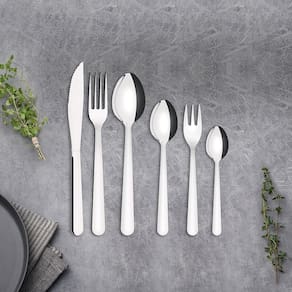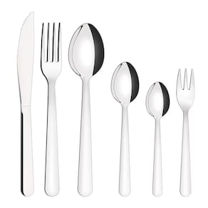 - 10 Facas para Churrasco 4""; 10 Garfos de Mesa; 10 Colheres de Mesa; 10 Garfos para Torta; 10 Colheres para Chá; 10 Colheres para Café