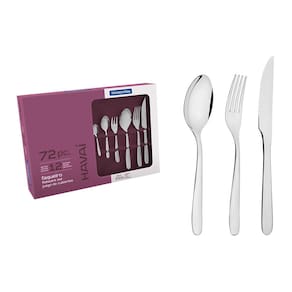 O que vem na caixa: 12 Colheres de mesa 12 Colheres para café 12 Colheres para chá 12 Facas para churrasco 12 Garfos de mesa 12 Garfos para torta