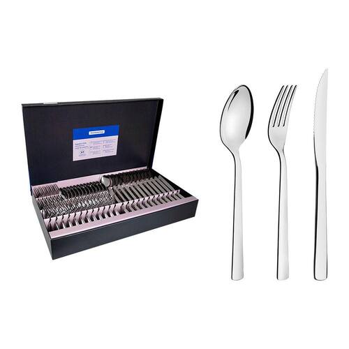 Linha: Oslo;Cor: Inox;Material: Aço Inox;Garantia: 90 dias junto ao fabricante;Referência: 66985154;Pegador/Cabo: Aço Inox;Pode ir à Maquina de Lavar Louças?: Sim; Itens Inclusos:12 Colheres de Mesa;12 Colheres para Café;12 Colheres para Sobremesa;12 Facas para Mesa/Churrasco;12 Garfos de Mesa;12 Garfos para Sobremesa; Ean: 7891116091180