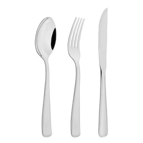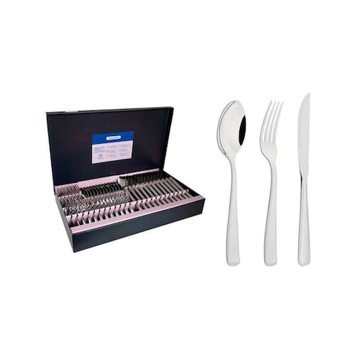 - 12 Colheres de Mesa; - 12 Garfos de Mesa; - 12 Colheres para Sobremesa; - 12 Colheres para Café; - 12 Garfos para Sobremesa; - 12 Facas de Mesa.