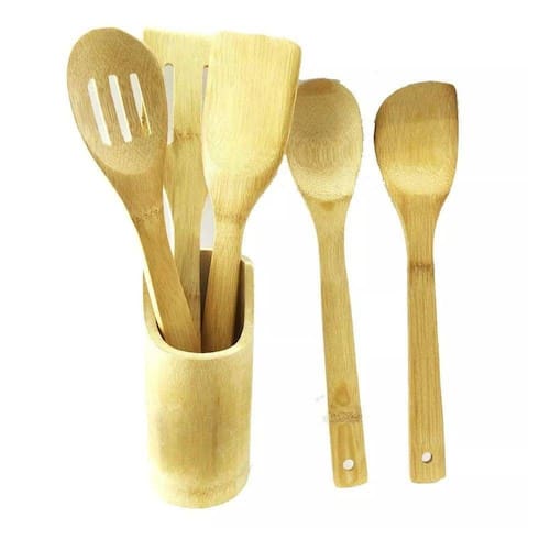 Contém: 01 Colher Grande :30cm x 6cm 01 Colher Escumadeira: 30cm x 6cm 02 Espátulas: 30cm x 6cm 01 Espátula Escumadeira: 30cm x 6cm 01 Suporte: 14cm x 9,5cm x 9cm