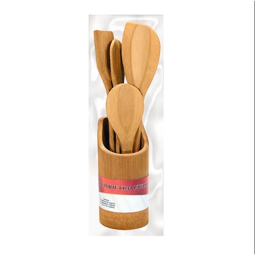 Kit de Colheres e Espatula de Madeira com Suporte A beleza rustica irá invadir a sua cozinha com este conjunto que mistura um design diferente com o rustico das colheres de madeira, prepare as melhores receitas, o conjunto acompanha de 01 espatula e 03 colheres de tamanhos diferentes. A Art House utiliza materiais de qualidade na produção de seus produtos. Informações do produto: Tamanho das colheres C x D : 01 - 30 cm x 6 cm 02 - 28 cm x 4,5 cm 03 - 20 cm x 6,5 cm Tamanho da espatula C x D : 28 cm x 4,5 cm Tamanho do Suporte A x D : 16 cm x 5,5 cm Composição: Madeira Ean: 7899658323943
