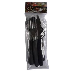 Conjunto de Talheres em aço inox com cabo plástico na cor preta de excelente qualidade. Decore sua mesa de jantar com estilo e sofisticação do este jogo de talheres