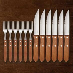 O Conjunto para Churrasco Garfo e Faca 24 Peças Mor é excelente para fazer parte do seu almoço de domingo reunindo a família e os amigos. Unindo estilo e design, são produzidos em aço inox com cabo em madeira. Extremamente duráveis, podem ir à lava-louças e permanecem bonitos por muito mais tempo. Diferenciada, a faca de serra possui lâmina mais larga e cabo mais robusto que as facas de modelo tradicional, garantindo o manuseio firme e corte preciso até mesmo nos maiores pedaços de carne.