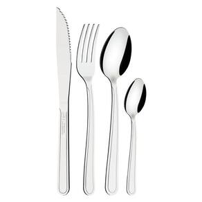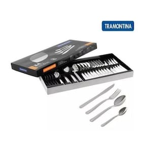 Jogo de Talheres Faqueiro Inox 24 Peças Búzios Tramontina Antes da primeira utilização, lave bem as peças e seque-as. Tenha cuidado ao manusear produtos cortantes e perfurantes e mantenha-os fora do alcance de crianças. Para maior durabilidade dos produtos, recomenda-se secar bem antes de guardar, mesmo após lavagem em máquina. Para descarte dos produtos e embalagens siga as orientações de reciclagem vigentes.