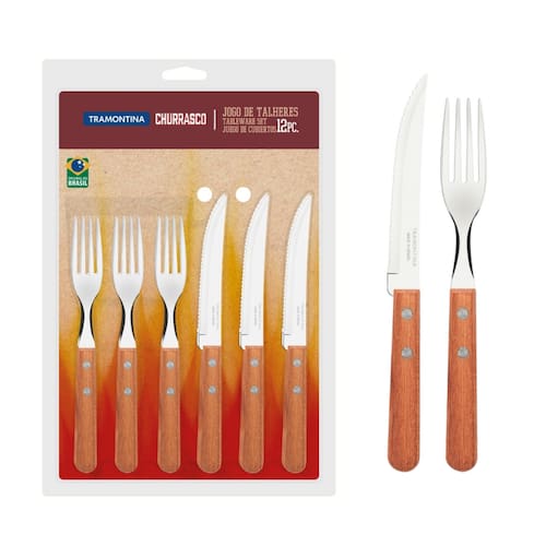 Jogo de Talheres Tramontina Churrasco com Lâminas em Aço Inox e Cabos de Madeira Natural 12 Peças