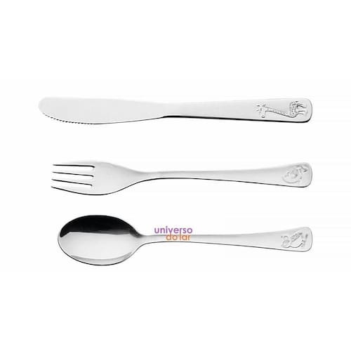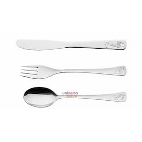 Com o Jogo de Talheres Infantil Tramontina em Aço Inox Acabamento Brilho com Desenho em Alto Relevo 3 Peças a hora da refeição ficará muito mais divertida. A linha infantil Baby é pensada especialmente para os pequenos, proporcionando peças ergonômicas e com variações de desenhos gravados em alto relevo, facilitando o seu manuseio e deixando o momento mais alegre. Cada talher é produzido totalmente em aço inox, por isso não solta nenhum resíduos nos alimentos e os papais podem ficar seguros.
