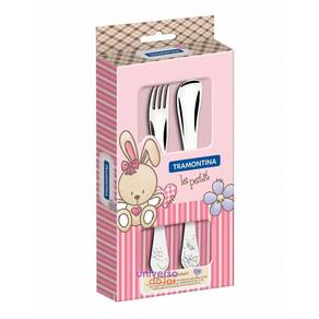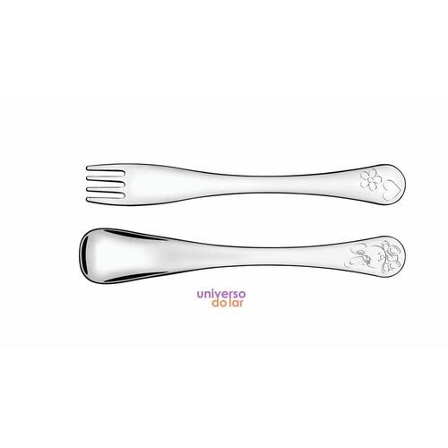 Jogo de Talheres Infantil Tramontina em Aço Inox Meninas Acabamento Brilho com Desenho em Alto Relevo 2 Peças Com o Jogo de Talheres Infantil Tramontina em Aço Inox Meninas Acabamento Brilho com Desenho em Alto Relevo 2 Peças, da linha Le Petit, a hora da refeição será pura diversão. As peças foram pensadas exclusivamente para os pequenos, oferecendo um formato ergonômico e com variação de desenhos para estimular sua criatividade e tornar o momento em uma brincadeira. Os talheres são produzidos totalmente em aço inox, não soltando nenhum resíduo nos alimentos, mantendo-os saudáveis e deixando os papais sem preocupações. Informações Gerais A linha Le Petit é delicada e funcional, inspirada pelos brinquedos das crianças. O melhor da infância para brincar também na hora da refeição.Totalmente feitos de aço inox, por isso não soltam nenhum resíduo nos alimentos, mantendo-os saudáveis. Altamente duráveis mantêm suas características originais, preservando a beleza, a higiene e a durabilidade do material. Talheres com formato ergonômico e com variação de desenhos, especialmente criados para incentivar e auxiliar no desenvolvimento das crianças. Acabamento em brilho, com opção para meninos e meninas. Podem ser lavados diariamente na máquina de lavar louças.