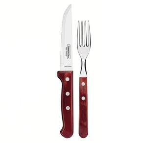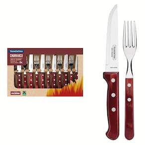 CONTEÚDO DO JOGO DE TALHERES - 6 Faca para Churrasco Jumbo 5" Polywood - 6 Garfo de Mesa Polywood