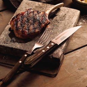 Seu churrasco nunca mais será o mesmo depois do jogo de talheres para churrasco jumbo Tramontina. O jogo da linha Churrasco da Tramontina possui peças com lâminas de aço inox, altamente duráveis. Os cabos de madeira tratada Polywood, proporcionam um design único para a mesa, além de serem resistentes à impactos e altas temperaturas. As facas oferecem um corte prático e sem esforço, tornando o momento de saborear um bom churrasco ainda melhor, garantindo que todos os seus convidados sairão satisfeitos.
