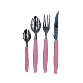 Jogo De Talheres Rosa Faqueiro Aço Inox Com Porta Talher