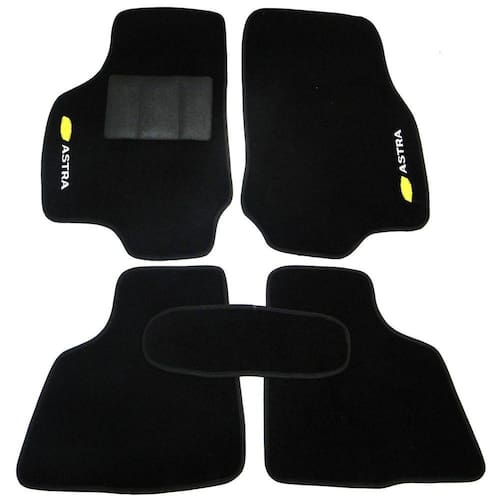 Com o Jogo de Tapete Automotivo Astra Carpete Forração, você terá um encaixe perfeito e sob medida para o seu veículo, além de um visual incrível com a grafia bordada igual à da montadora. O jogo é composto por 2 tapetes dianteiros, 2 tapetes traseiros e 1 tapete central.