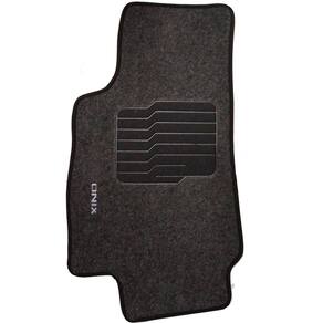 Especificações - Carpete agulhado de 05 mm em fibra de PET e resina sintética. - Acabamento em viés preto - Sistema de segurança aderente - Base resinada. - Bordado com a identificação do veículo - Durabilidade - Modelagem específica - Fácil adaptação e instalação