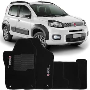 Jogo de Tapete Automotivo Carpete Fiat Uno Way 2011 à 2018 Soft Logo Bordado 5 Peças - Cor: Preto