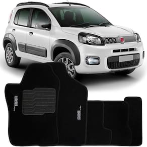 Jogo de Tapete Automotivo Carpete Fiat Uno Way 2011 à 2018 Soft Logo Bordado 5 Peças - Cor: Preto
