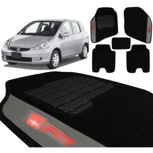 Jogo de Tapetes Carpete Fit 2004 a 2008 Preto Bordado 5 Peças