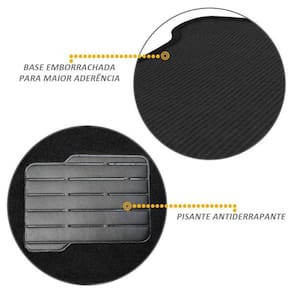 Fabricado em carpete automotivo , material já conhecido pela excelente qualidade e resistência, Além da sua base emborrachada para dar mais fixação no assoalho do veiculo.
