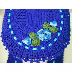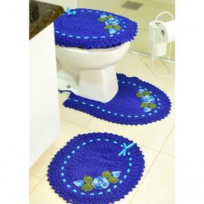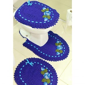 JOGO DE TAPETE DE CROCHE PARA BANHEIRO COM 3 PEÇAS AZUL ROYAL