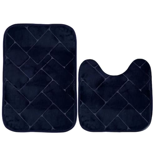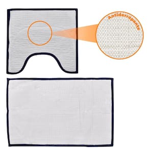 Composto por duas peças, o conjunto inclui um tapete em U de 45cm de comprimento e 38cm de largura, perfeito para a base do vaso sanitário e um tapete retangular de 45cm de largura e 75cm de comprimento, ideal para a frente da pia e do box ou pode ser utilizado como complemento em qualquer área do banheiro.