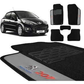 Jogo De Tapetes Carpete Peugeot 207 Preto Bordado 5 Peças