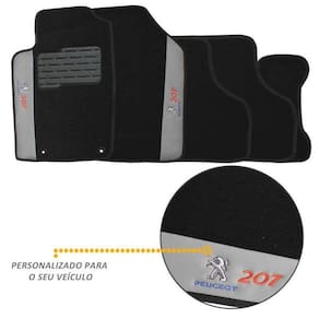 Jogo de Tapetes Carpete Peugeot 207 Preto Bordado 5 Peças